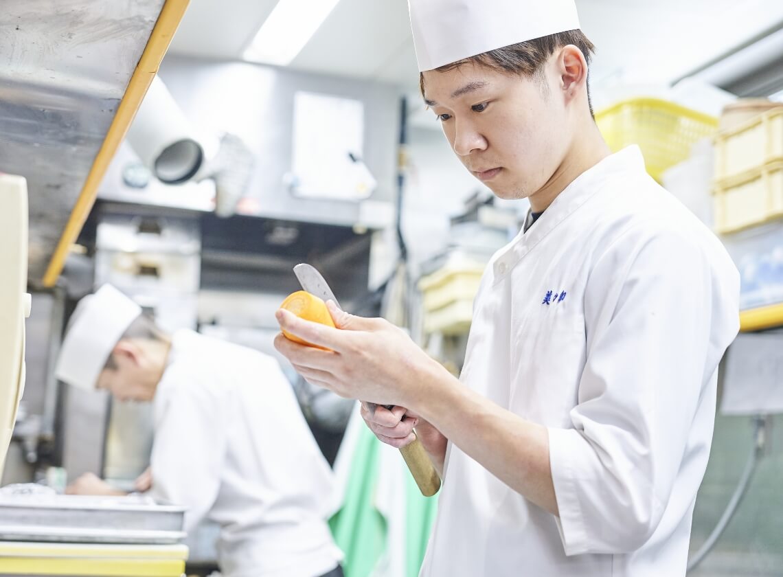 天ぷらを揚げられるようになりたいですね。天ぷら場を受け持つのは5年以上の経験がある人が多いですが、美々卯は意欲さえあればどんどんステップアップできるので、年齢や社歴は関係ないと思っています。とはいえ、僕の実力ではまだまだ。今は自分のできることをもっと増やして、少しずつでも成長していきたいです。